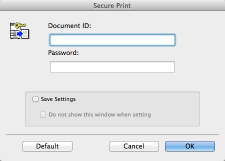 Si se selecciona la casilla de verificación [Save Settings], la configuración se guarda. Si se selecciona la casilla de verificación [Do not show this window when setting], este cuadro de diálogo no aparecerá la próxima vez. En caso de que siempre utilice el mismo ID de documento y contraseña, seleccione esta casilla de verificación para eliminar la necesidad de introducirlos cada vez.