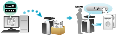 Dado que se requiere la autenticación en esta máquina para imprimir los datos guardados en la carpeta, la función es adecuada para imprimir de forma segura documentos confidenciales. Una vez realizada la autenticación, los datos de impresión del usuario que ha iniciado sesión se imprimen de forma automática. Esto optimiza la seguridad y garantiza un funcionamiento sin problemas.