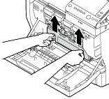 Premere verso l'alto il raccoglitore del toner di scarto per sbloccarlo.