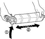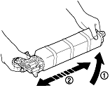 Impugnare una nuova unità Immagine con due mani e scuoterla varie volte come illustrato nella figura.