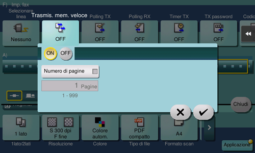 [ON]/[OFF] | Selezionare [ON] per specificare Trasmis. mem. veloce. |