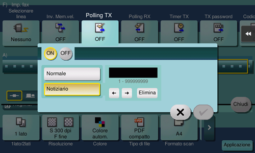 [ON]/[OFF] | Selezionare [ON] per specificare Polling TX. |