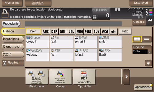 Selezionare una destinazione dalla Rubrica. È possibile trasmettere file selezionando destinazioni multiple.