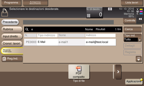 Selezionare un metodo di ricerca indirizzo, quindi eseguire la ricerca dell'indirizzo. Selezionare una destinazione nell'elenco dei risultati di ricerca.