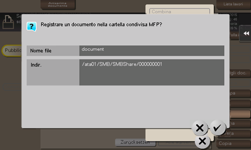 Questa funzione è disponibile quando i file contenuti in una casella utente pubblica vengono condivisi in rete utilizzando la funzione Condividi file SMB.