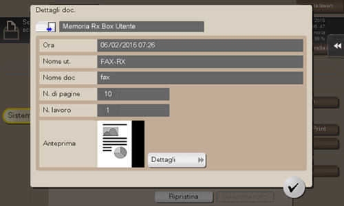 È possibile cancellare il tempo di memorizzazione, il conteggio delle pagine e l'immagine di anteprima del file selezionato.