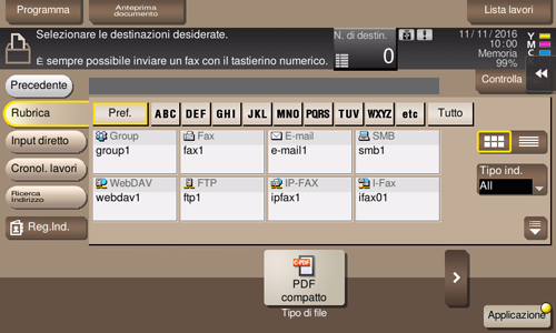 Selezionare una destinazione dalla Rubrica. È possibile trasmettere file selezionando destinazioni multiple.