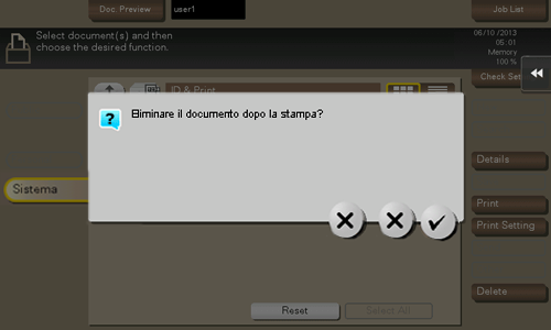 [No] | Consente di stampare il file e lasciarlo nella casella utente. |