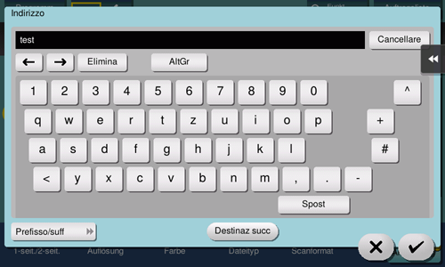 Inserire un indirizzo e-mail di destinazione quando i dati dell'originale scansionato sono inviati come allegato e-mail.