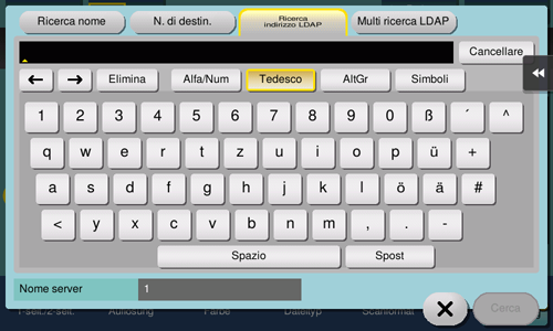 Se si utilizza il server LDAP o Windows Server Active Directory, specificare una sola parola chiave per cercare un indirizzo e-mail o numero di fax.
