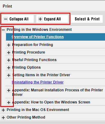 Para imprimir la explicación o página mostrada actualmente, haga clic en [Imprimir esta página], [Imprimir este contenido] o [Imprimir esta explicación].