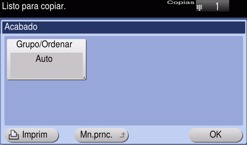[Agrupar/Ordenar] | Permite seleccionar el método de salida cuando se realizan copias múltiples.