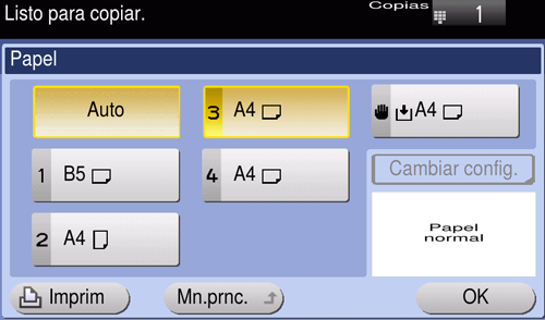 [Auto] | Selecciona automáticamente el papel que se ajuste al tamaño del original al realizar una copia. |