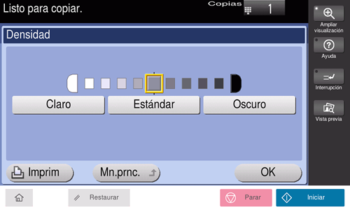 Toque [Original/Densidad] - [Densidad] para ajustar la densidad.