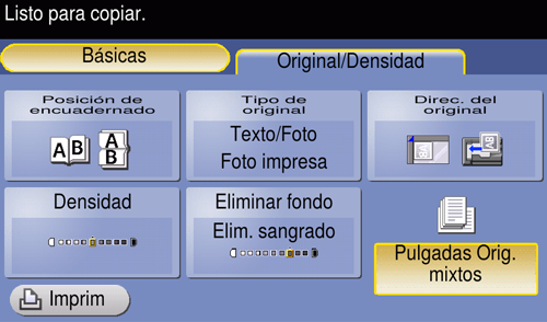 [Papel copiado] | Permite copiar un original que salió de la impresora o copiadora con una densidad uniforme, al nivel óptimo de calidad de imagen. |