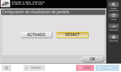 Seleccione [Accesibilidad] - [Configuración de visualización de pantalla de inversión de color] y después seleccione si se debe invertir el color de visualización de pantalla (predeterminado: [OFF]).