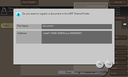Cette fonction est disponible quand des fichiers de la Boîte utilisateur publique sont partagés sur le réseau à l'aide de la fonction Partager fichier SMB.