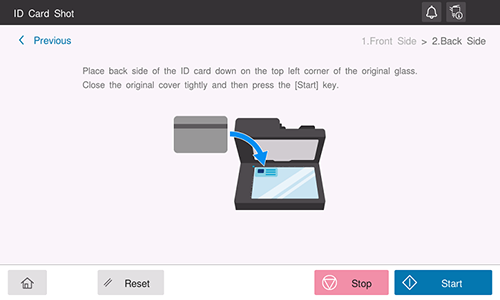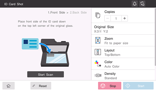 Pour copier différents types de carte comme une carte d'assurance maladie ou un permis, utilisez le mode de copie de cartes d'identité. Une simple opération permet de copier le recto et le verso d'une carte côte à côte sur la même face d'une seule feuille.
