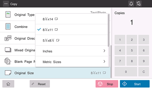 Sélectionner le format de l'original à numériser.