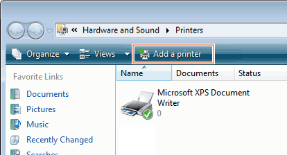 - In Windows Vista/Server 2008, click [Printer] under [Hardware and Sound]. When [Control Panel] is displayed in Classic View, double-click [Printers].