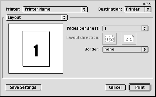 [Pages per sheet:] | Multiple pages can be reduced and printed on the same side of a single sheet of paper. |