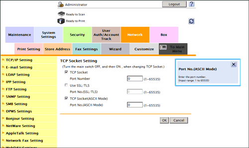 In the [Network] menu that appears after you log in to the administrator mode of Web Connection, you can use the popup help.