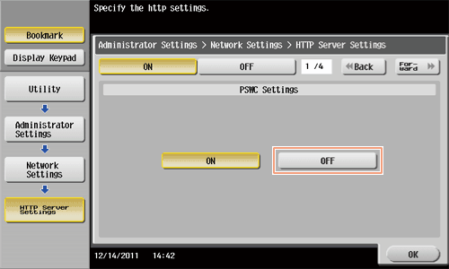 On the Control Panel, press [Utility] - [Administrator Settings] - [Network Settings] - [HTTP Server Settings], and set [PSWC Settings] to [OFF] (Default: [ON]).