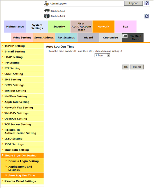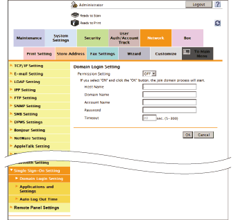 [Permission Setting] | Select [ON] to use the single sign-on function. [OFF] is specified by default. |