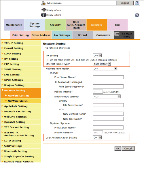 [IPX Setting] | Select [ON] to use this machine in the IPX environment. [OFF] is specified by default. |