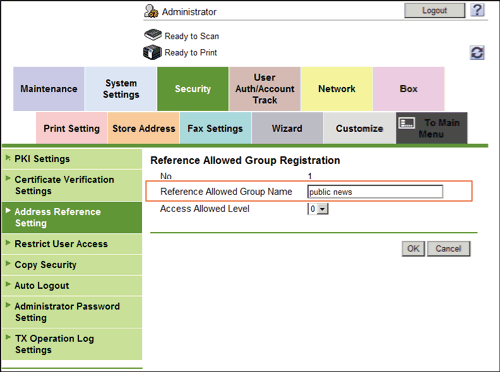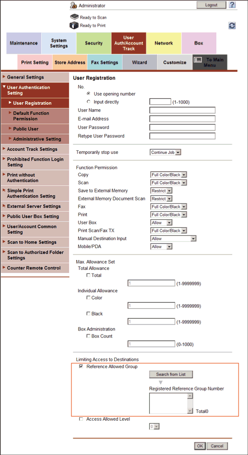 Register a reference allowed group on this machine. In addition, assign a reference allowed group to the destination and user.