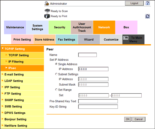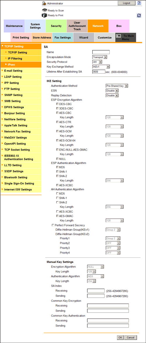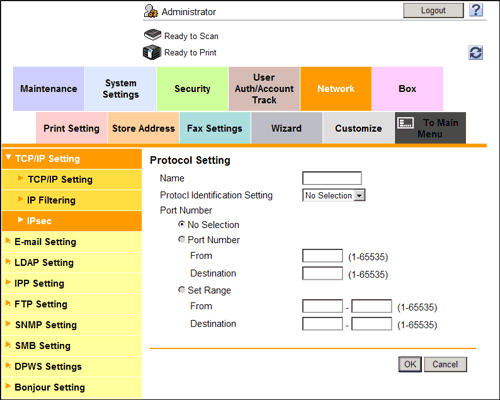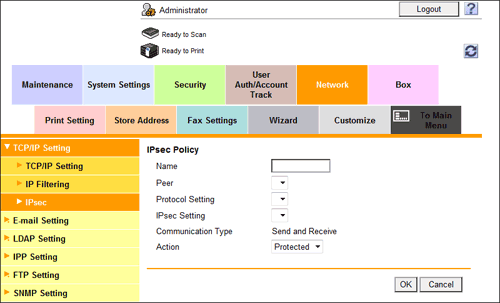 [Protocol Setting] | Select a protocol. Select the setting from those registered in [Protocol Setting] in [IPsec Setting]. |