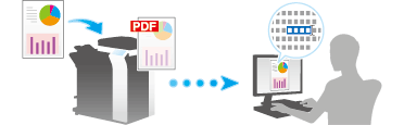When converting scanned original data to PDF format, paste transparent text data into a PDF file, then create a searchable PDF file. This function automatically creates text information from scanned images using OCR character recognition technology.