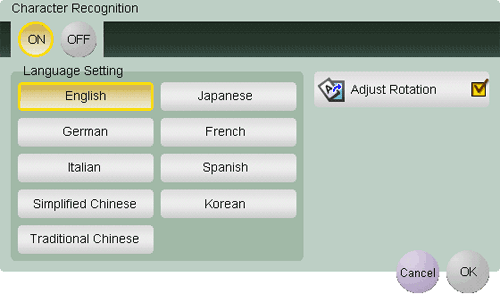 [Language Setting] | Select a language for OCR processing. Select the language used in the original to recognize text data properly. |