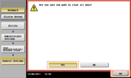 Set [General Settings] to [ON (MFP)], then tap [OK].