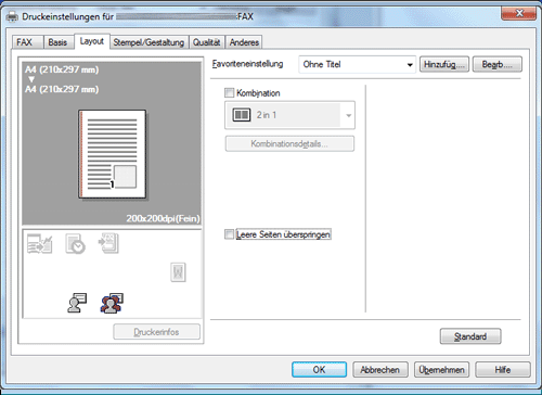 Auf der Registerkarte [Layout] können Sie Layout-Einstellungen für die Faxübertragung konfigurieren.