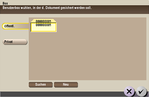 Wählen Sie eine Box, in der eine Datei abgelegt werden soll, und tippen Sie dann auf [OK].