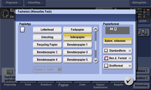 ] - [Facheinstellung ändern] - [Papiertyp] - [Indexpapier] aus.