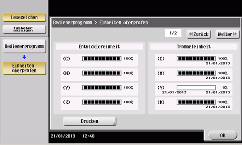 Prüfen Sie den Status des Verbrauchsmaterials.