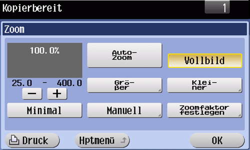 Sie können beim Erstellen einer Kopie ein Bild mit dem angegebenen Zoomfaktor vergrößern oder verkleinern.