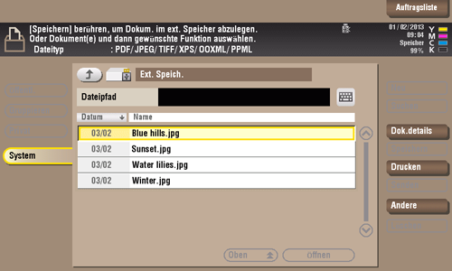 Tippen Sie auf [Dokument aus ext. Speicher drucken].