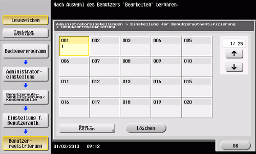 Wählen Sie die Registrierungsnummer des gewünschten Benutzers aus und tippen Sie anschließend auf [Bearbeiten].