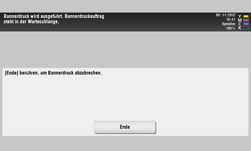 Vergewissern Sie sich, dass der Bildschirm angezeigt wird, der auf den anstehenden Bannerdruck hinweist.