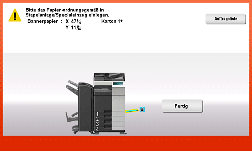 Wenn ein Auftrag für den Druck auf Papier in einem anderen Format - also nicht im Bannerformat - empfangen wird, während das System auf einen Bannerdruckauftrag wartet, wird dieser Auftrag verworfen.