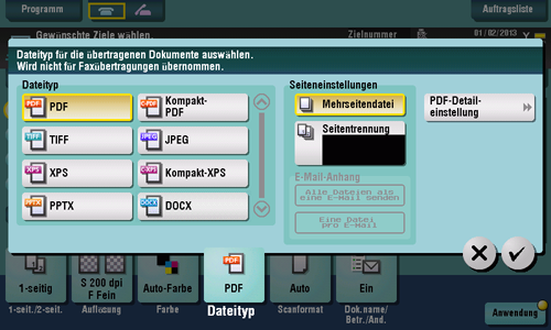 F7: Kann ich für Dateien, die versenden möchte, den Dateityp oder Farbmodus wählen?