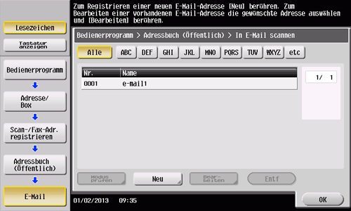 Wählen Sie [Scan-/Fax-Adr. registrieren] - [Adressbuch (Öffentlich)] aus.