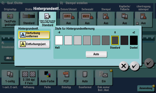 [Auto-Farbe] | Die Farbe des Originals wird automatisch erkannt. Beim Scannen wird eine Anpassung an die Originaleinstellungen vorgenommen. |
