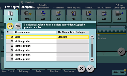 Wenn Sie einen vom Standardnamen abweichenden Absendernamen verwenden möchten, wählen Sie den gewünschten neuen Absendernamen und tippen dann auf [OK].