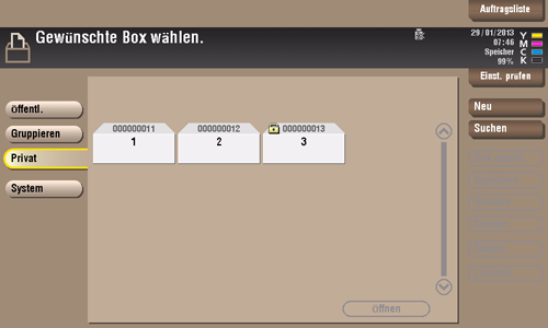 Wählen Sie für den Zugriff auf eine Datei in dieser Box die gewünschte Box aus und tippen Sie dann auf [Öffnen].
