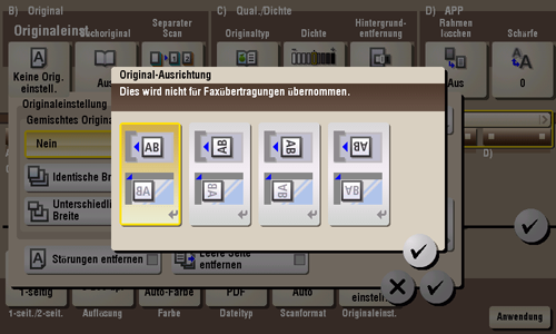 Geben Sie die Ausrichtung des eingelegten Originals an.