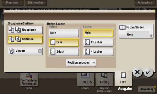 • Zur Verwendung der Heftfunktion wird der Finisher benötigt.